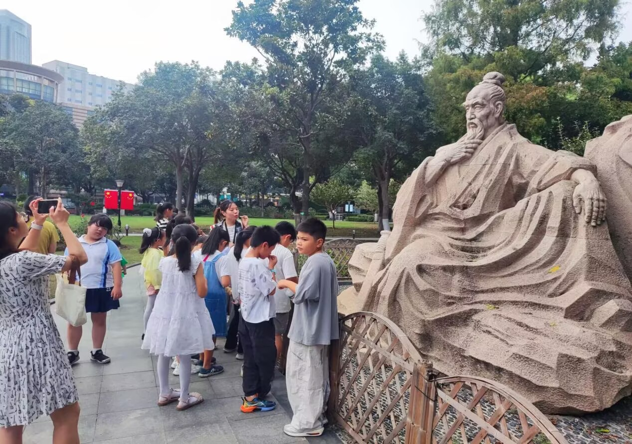 9月27日下午,市园管中心联合江苏理工学院文化与旅游学院、市文明素养研究会,在人民公园开展了“公园里的思政课——生态园林城市中的常州精神”活动,常州谭市小学20余名师生参加活动。 作为承载常州千年文脉的城市绿地,人民公园将季子石像、季子亭等静态景观转化为生动的教育载体,使师生们在游览中通过“封邑延陵”“三让王位”“徐墓挂剑”等历史典故,深刻认识到季子文化的内涵。在季子石像前,学生们围坐聆听老师讲解诚信精神,并积极分享自己在生活中践行诚信的经历,在沉浸式体验中加深对常州生态园林文化和传统美德的理解。 本次活动整合高校、中小学与社会组织等多方资源,拓展了公园的社会功能,通过讲述本土历史,有效增强了青少年对家乡文化的认同感,实现了社会教育与校园教育的有机衔接。 |