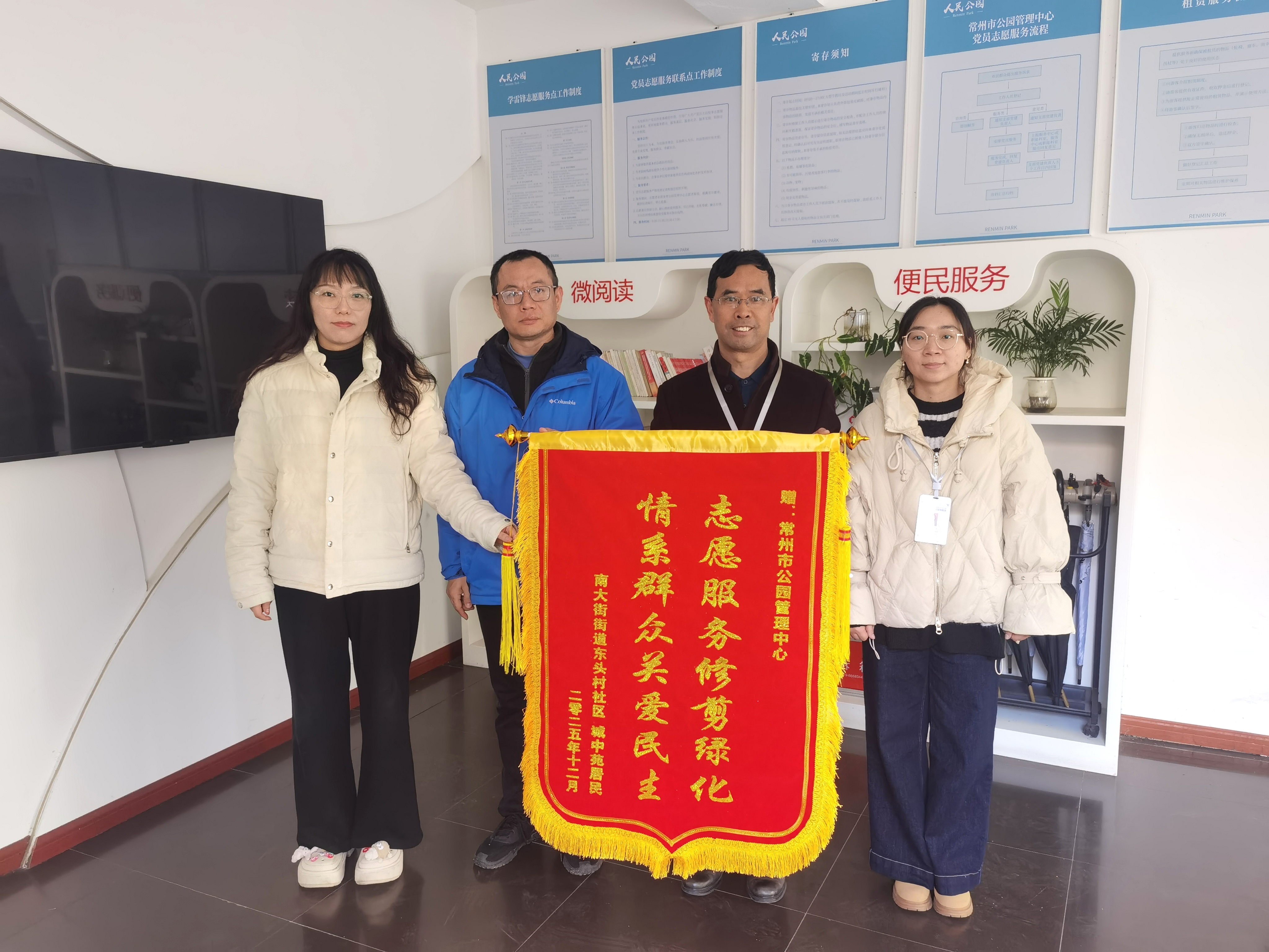 | 市园管中心党员志愿服务获社区赠旗致谢 |
