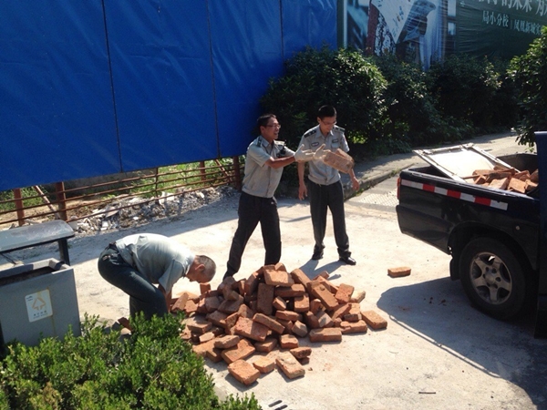 10月29日下午2时许,雕庄城管中队队员巡查至中吴大道泰和之春工地时,发现路面及人行道上有运输砂石车辆撒落的大片碎石子和砖块,给过往车辆和行人的通行造成了安全隐患。队员立即联系运输单位负责人,责令其进行清扫。考虑到碎石子和砖块遗撒面积较大,来往车辆较多,清扫工人到场需一定的时间,城管队员先行帮忙进行清扫。清理完碎石和砖块后,执法队员再次联系了该运输单位负责人,进一步明确运输车辆必须做到密闭运输,以防此类安全隐患的再次发生。