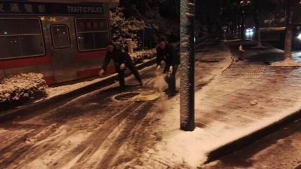 1月31日下午,突如其来的大雪使地面结成厚厚的冰雪,给居民出行和生活带来不便。天宁城管部门根据部署,立即启动灾害天气应急预案,从1月31日晚间开始,全员上岗,扫雪铲冰,保障市民出行安全。