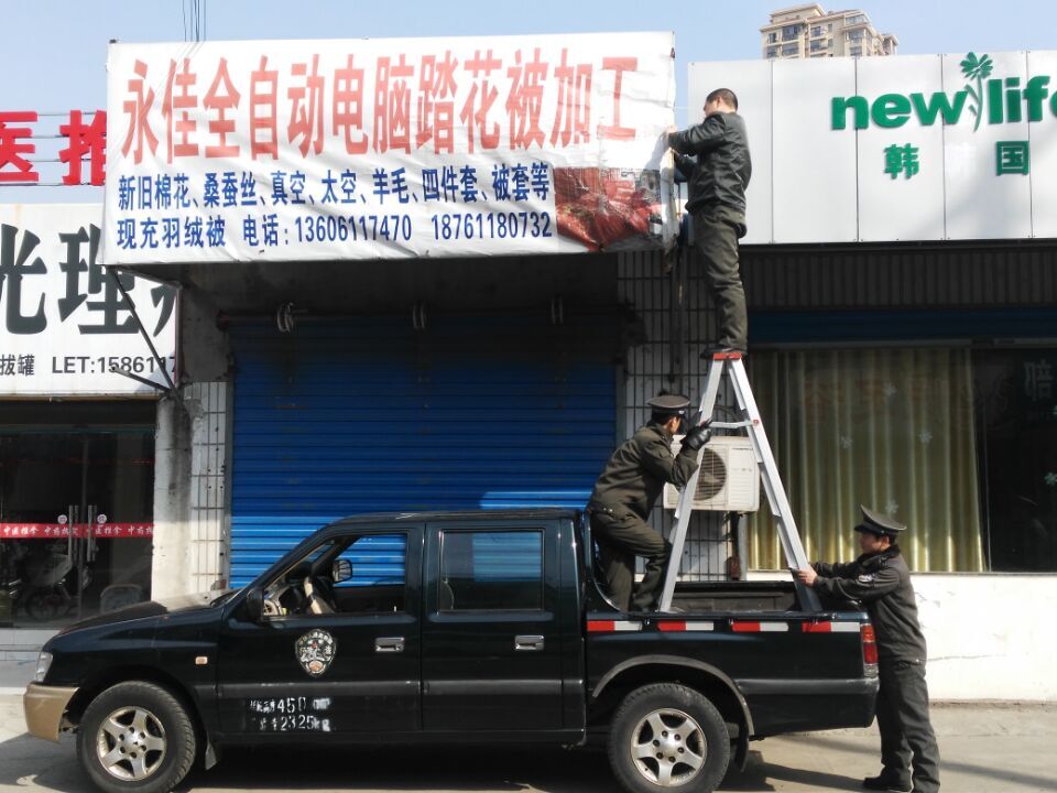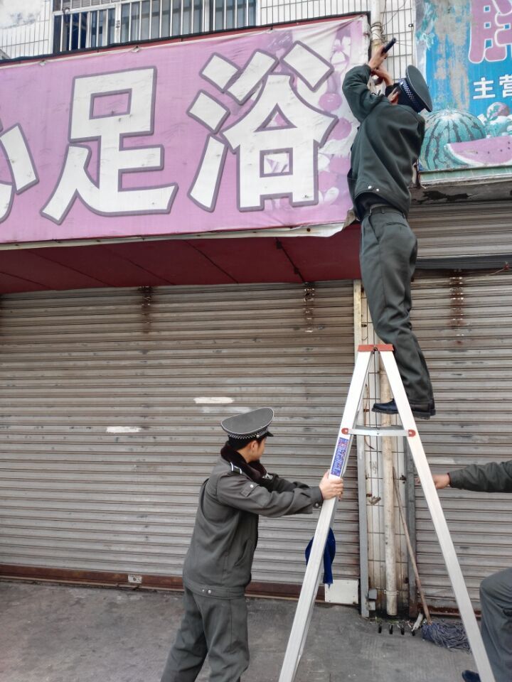 在市民们还沉浸在春节的喜庆氛围中时,钟楼城管已经秩序井然地开展节后市容管理提升工作,对辖区内的乱张贴、乱堆放、占道经营、广告破损等违章现象进行清理。 春节刚过,出租广告、广告破损、乱张贴、店外出摊等违章现象较为严重。为了还市民一个良好的节后环境,同时也为2016年“市容管理提升年”打下一个扎实的基础,钟楼大队立即开展针对上述违章现象的专项整治行动。 在开展专项整治行动时,各中队先向经营户们发放温馨告知书,规范经营行为,然后自己动手,用铲刀清除乱张贴,用皮卡拖运建筑垃圾,自驾梯子拆除破损广告,为经营户门主动提供服务,赢得广大经营户的一致认可。 在新的一年,钟楼城管将变被动管理为主动服务,不断加强与街道、村委、社区的合同协作,以饱满的精神,昂扬的斗志,确保完成2016年“市容管理提升年”工作目标,为广大居民营造一个美丽舒适的生活环境。