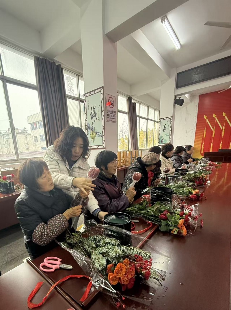 12月24日上午,常州市园艺发展服务中心党支部与金坛区直溪镇迪庄村党总支联合开展“党建聚合力,园艺传温情”主题活动。30位老年村民在园艺师的专业指导下,亲手进行插花创作。