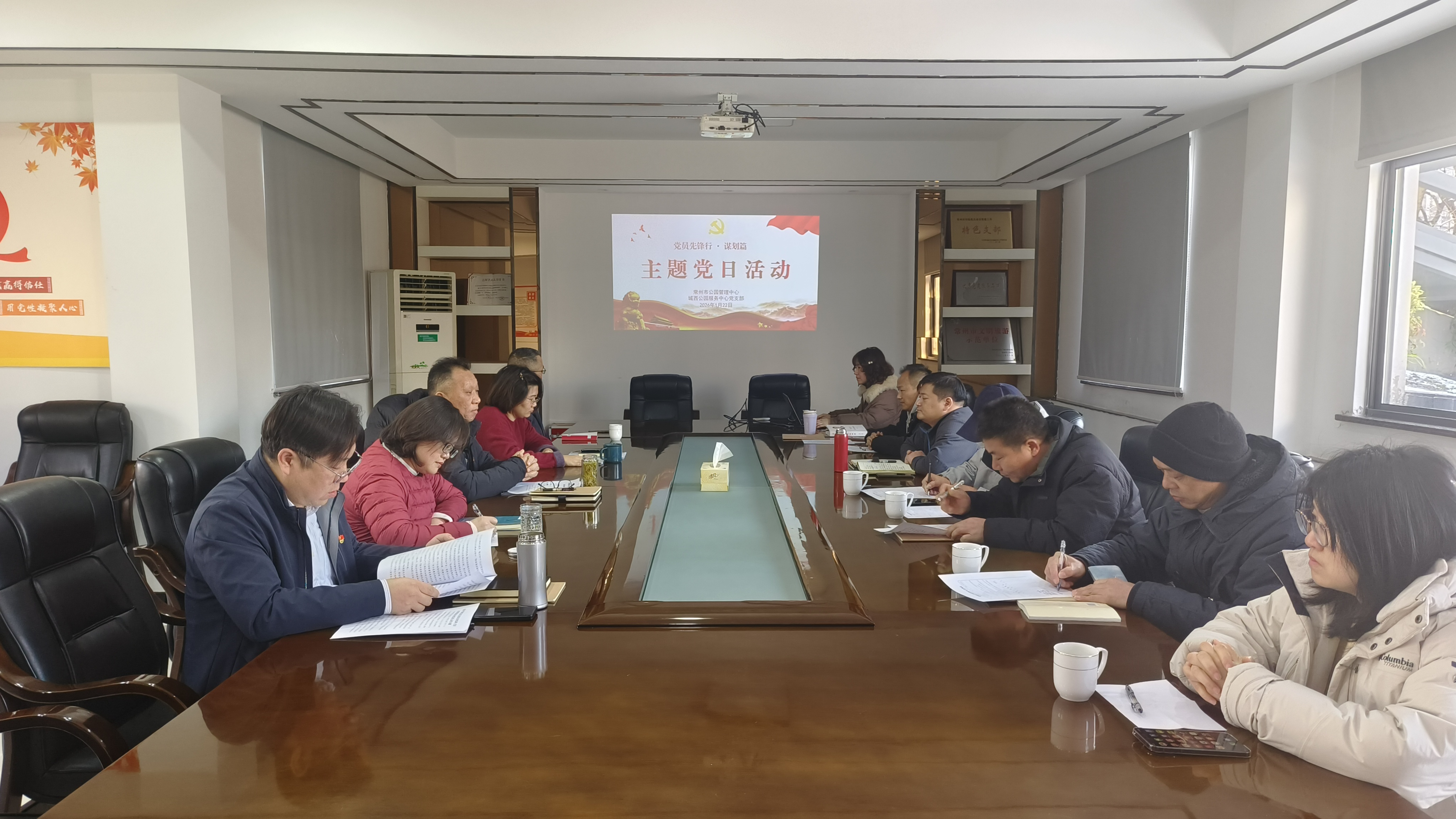 1月22日,市园管中心城西公园服务中心党支部组织全体党员开展“党员先锋行·谋划篇”主题党日活动,深化党的创新理论学习,凝聚党员力量。