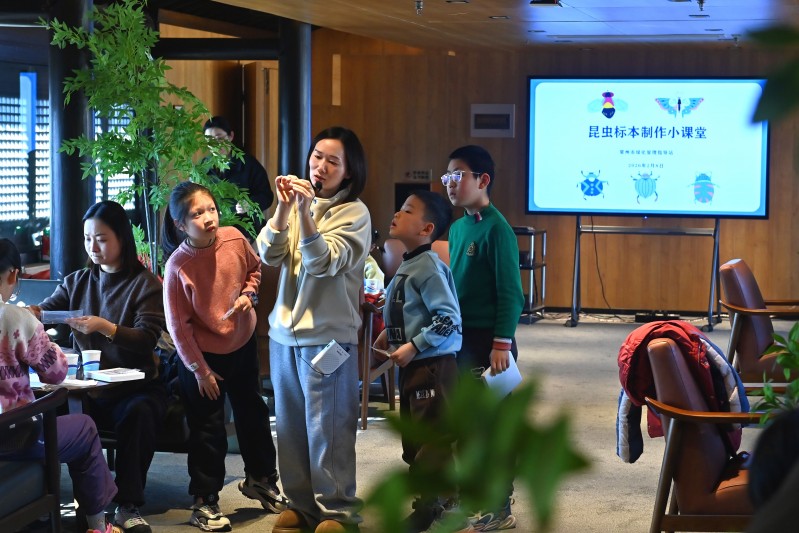 活动中,工作人员带领探访市民家庭漫步焦溪古镇,实地讲解了古雪松、古腊梅、古榔榆等古树的悠远历史与文化内涵。市民通过扫码即可登陆“常州古树名木”小程序,查看古树信息化档案。其中,承越故居旁一树龄约160年的古蜡梅正值盛放期,满枝嫩黄、清香沁人,引得众人频频驻足观赏。随后,大家移步参与昆虫标本制作环节,工作人员细致演示了从昆虫软化、固定、展翅到标本保存的全过程,并指导孩子们动手操作,现场学习氛围浓厚。