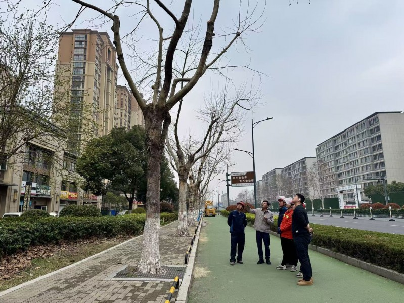 3月19日下午,市绿化管理指导站组织金剪刀绿化人才工作室技术人员赴武进区聚湖东路开展行道树悬铃木修剪技术指导,工作室武进恒诺分部成员和一线养护人员共同参与现场学习。